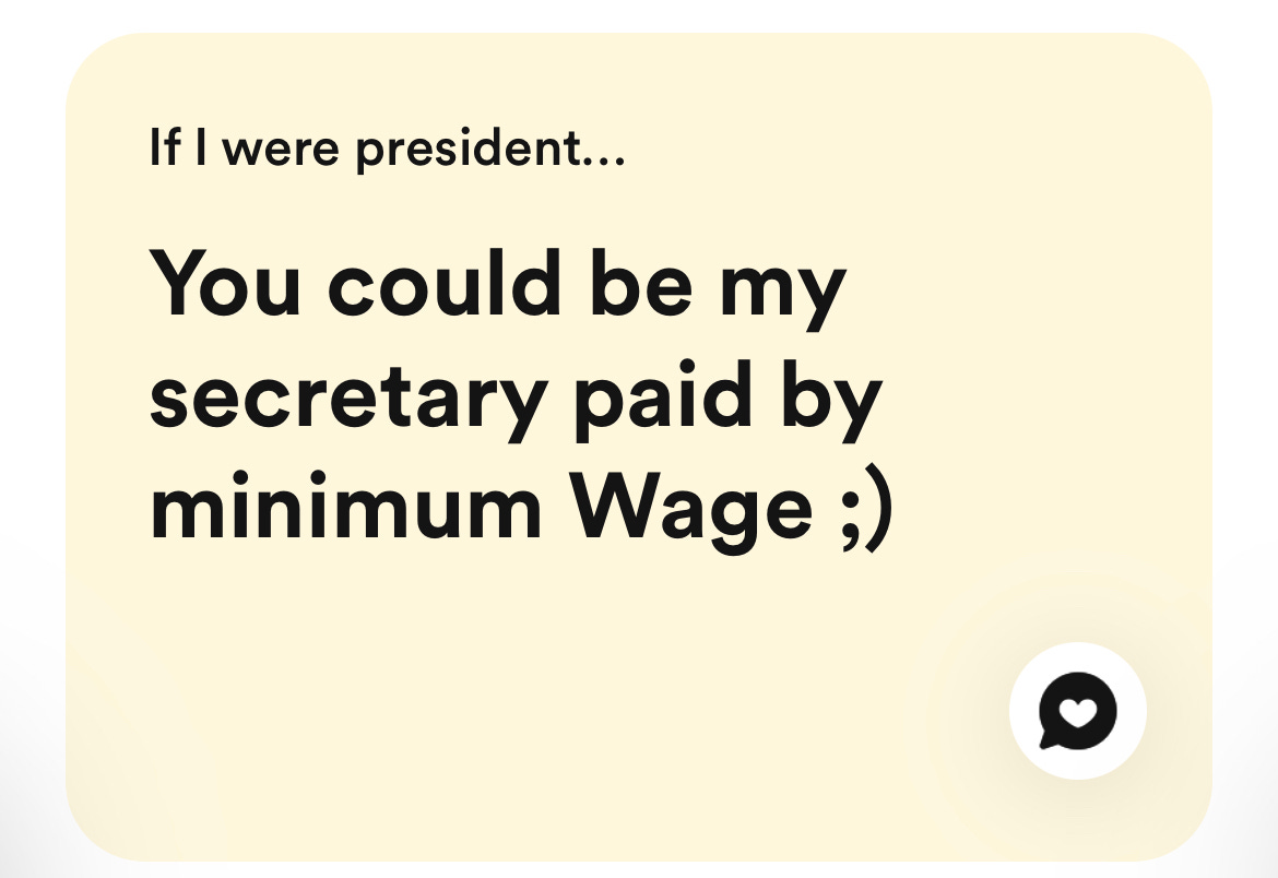 And if I were president, I’d probably put a ban on dating apps at this point.