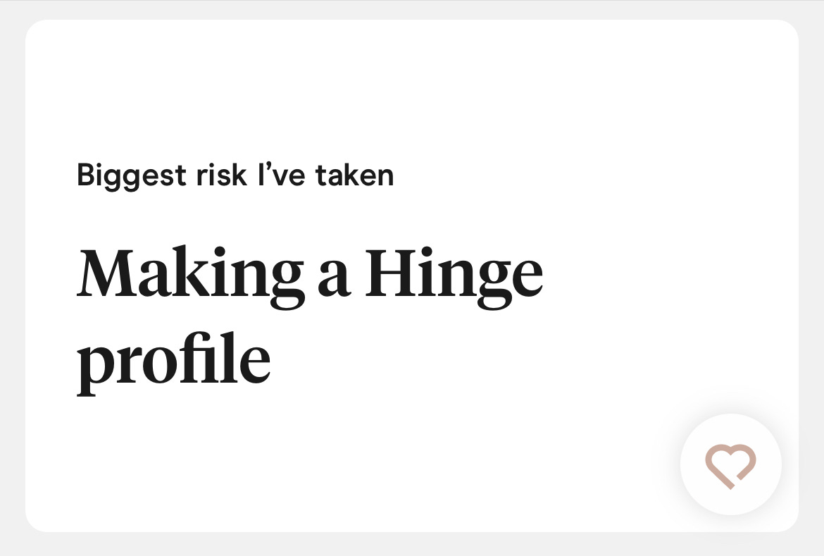 "Biggest risk I've taken? Why making a Hinge profile of course ;)"